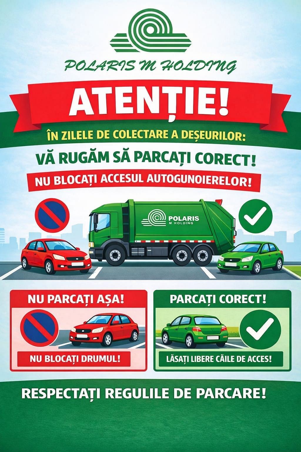 În comunicatul transmis pe 16 ianuarie 2026, Polaris anunța că vor fi ridicate doar deșeurile depozitate în pubelele Polaris, iar recipienții neconformi urmau să fie marcați cu o etichetă de atenționare, fără ca gunoiul să fie colectat.