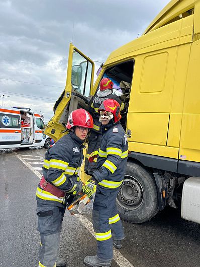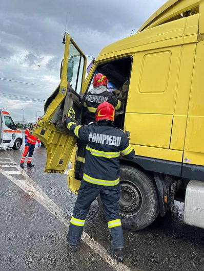 I.S.U Vrancea, 28.05.2024 ora 14.52 Două echipaje din cadrul Detașamentului de Pompieri Focșani intervin cu o autospecială de intervenție și o autospecială de descarcerare, la un eveniment rutier în care au fost implicate două TIR-uri, produs pe DN2 E85, în dreptul localității Cotești. Posibil ca o persoană să fie încarcerată.