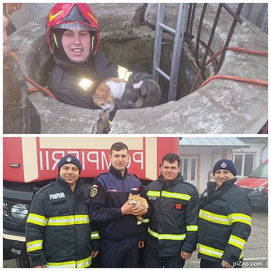 Cu profesionalism, calm și atenție sporită, pompierii au coborât în interiorul fântânii și au reușit să scoată în siguranță micuța felină. Din fericire, în urma intervenției, pisica nu a suferit răni și nu a necesitat îngrijiri medicale.