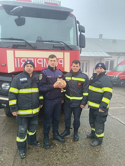 Salvarea însă nu s-a oprit aici. Neavând un proprietar, pisica a fost adoptată de pompierii adjudeni și dusă în subunitate, unde a găsit nu doar un adăpost temporar, ci și căldura unui culcuș și afecțiunea celor care i-au salvat viața.