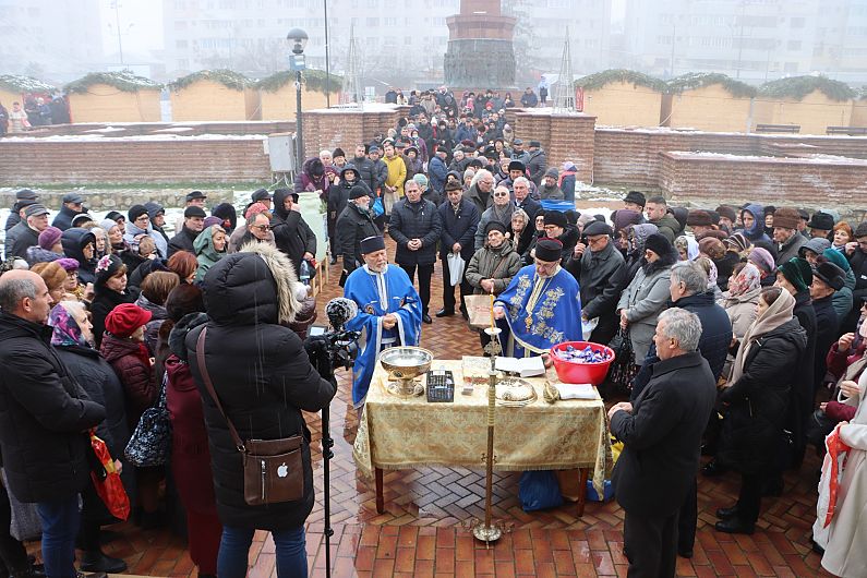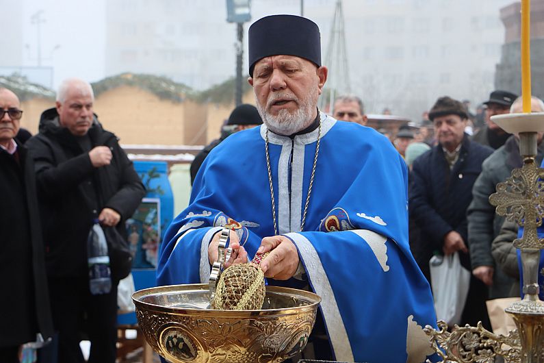 Slujba religioasă a fost oficiată de preoții parohiei, care au binecuvântat apa ce a fost ulterior oferită credincioșilor. În ciuda temperaturilor scăzute specifice începutului de ianuarie, numeroși locuitori ai municipiului și ai localităților din apropiere au așteptat la rând pentru a primi Agheasma Mare, considerată un simbol al purificării și al protecției divine pentru întregul an.