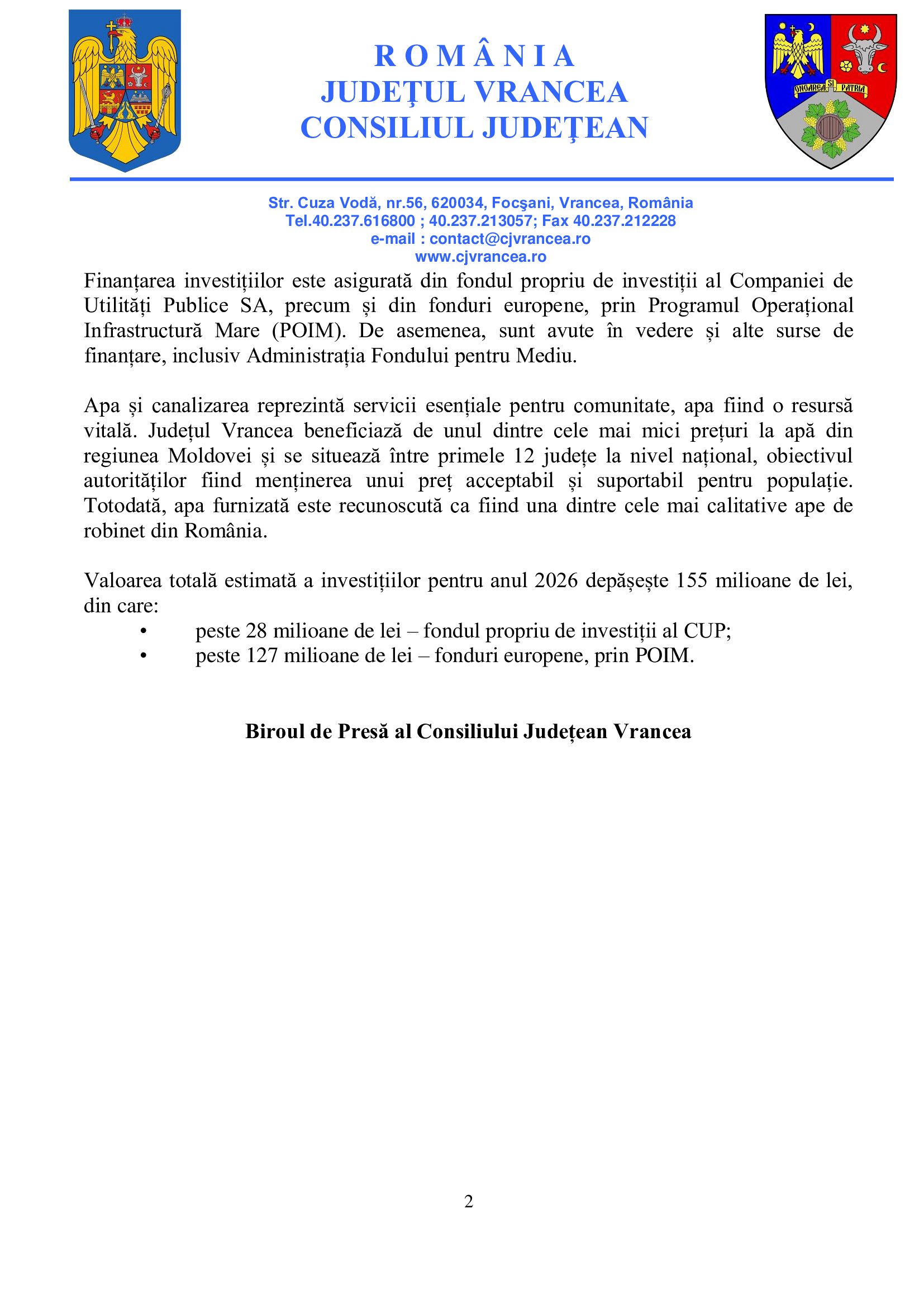 Citiți și conținutul integral al comunicatului făcut public miercuri 28 ianuarie 2026 ora 16:03 de către Biroul de presă al Consiliului Județean Vrancea în legătură cu această știre