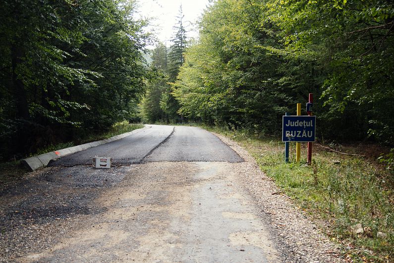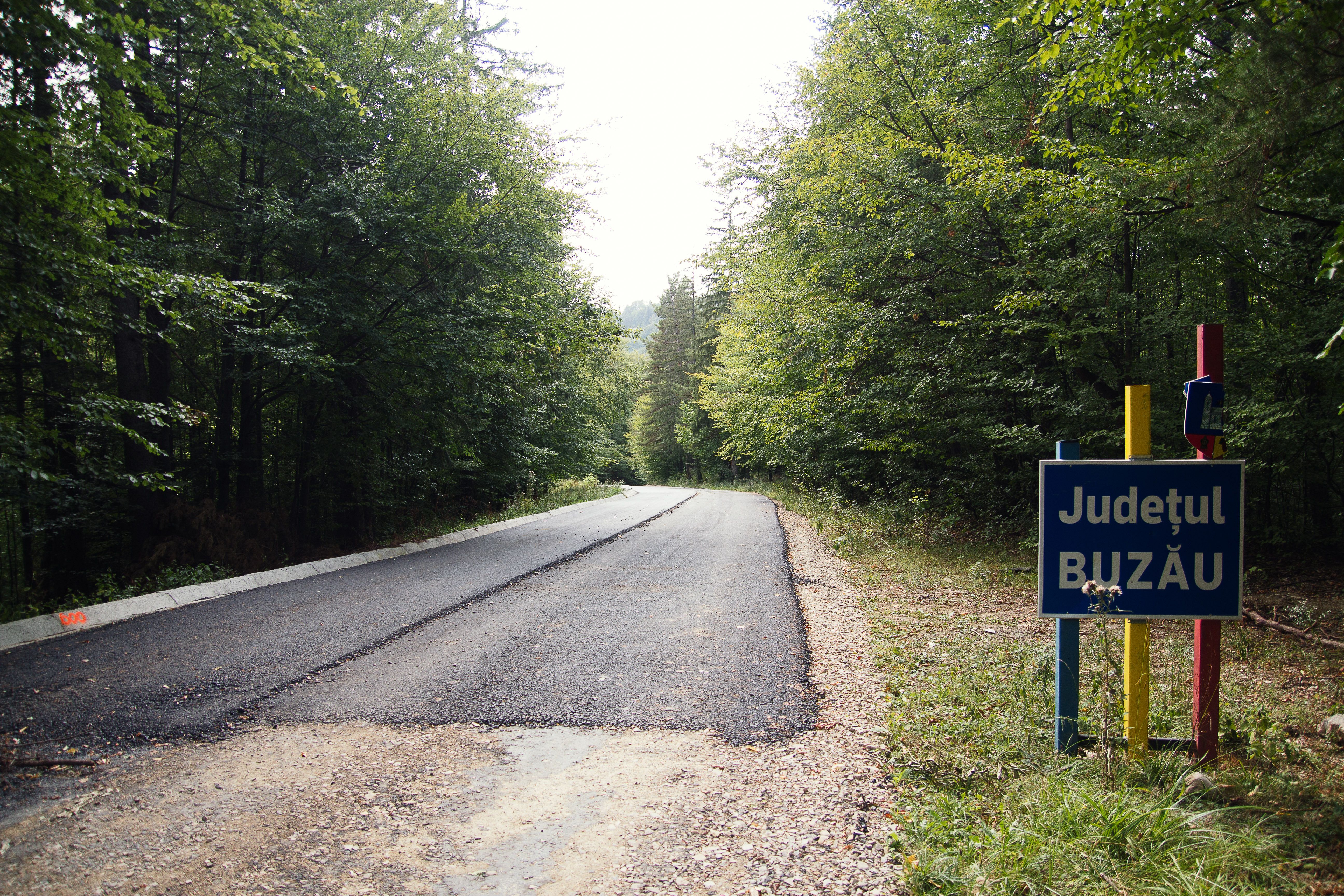 Am parcurs cei trei kilometri cu teamă și la hotarul cu Buzăul am răsuflat ușurat. Aici a început asfaltarea înspre Bisoca. Bravo lor.