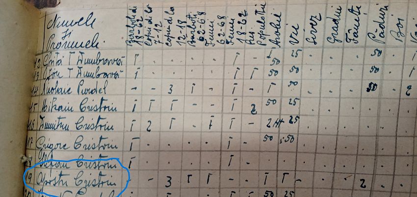 Următoarea informație despre familia Cristoiu o identificăm în anul 1940, când bunicul ziaristului, Apostu Cristoiu figurează cu „ pământ arabil, vie și ceva pădure” , în recensământul local consemnându-se și unele date despre familie, anume „ 3 copii cu vârste de până în 18 ani” . Aceștia sunt, cu siguranță, frații sau surorile tatălui ziaristului. În schimb părintele lui, având deja vârsta de 27 de ani, la data întocmirii evidenței respective, plecase, cu certitudine, din gospodărie pentru a- i întemeia rostul său. În 1945 în casa lui Apostu Cristoiu mai rămăsese doar un copil, semn că mai zburaseră încă doi, între timp. Urmează în documentare