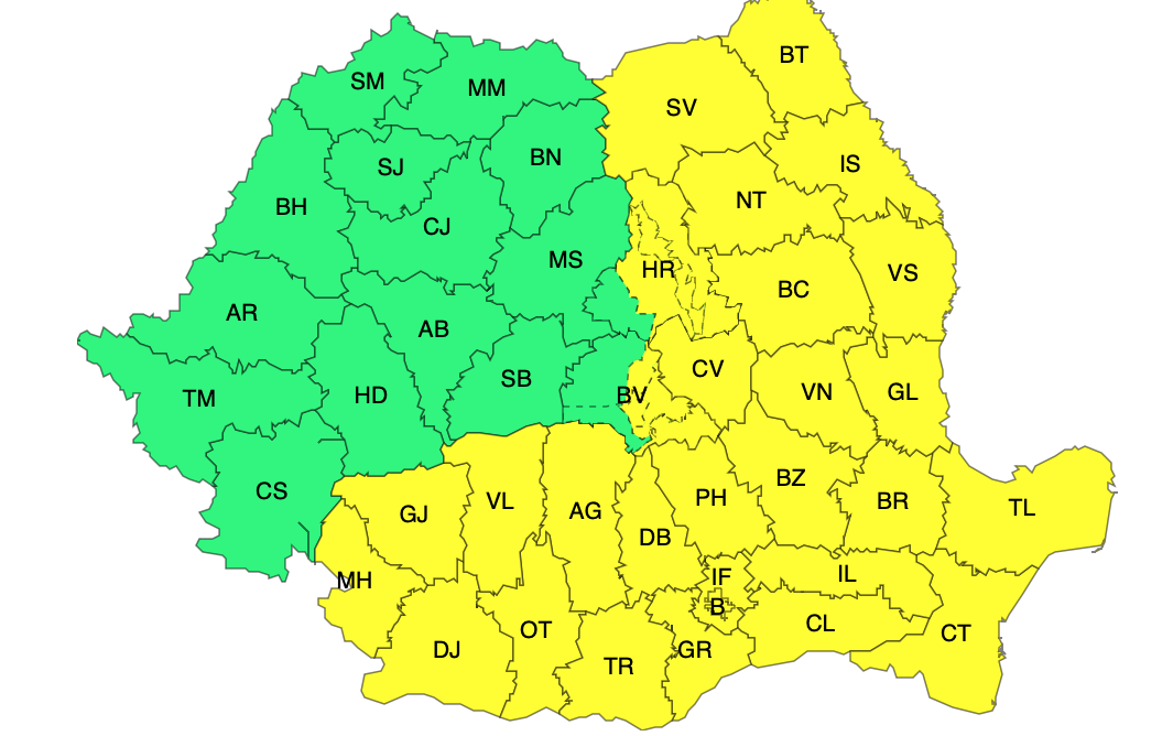 să urmărească informările oficiale, întrucât situația meteo poate fi actualizată prin avertizări nowcasting.