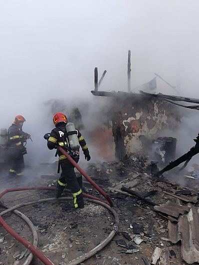 Intervenție de urgență a pompierilor din Adjud și a echipajelor SMURD, după ce o anexă gospodărească a fost cuprinsă de flăcări