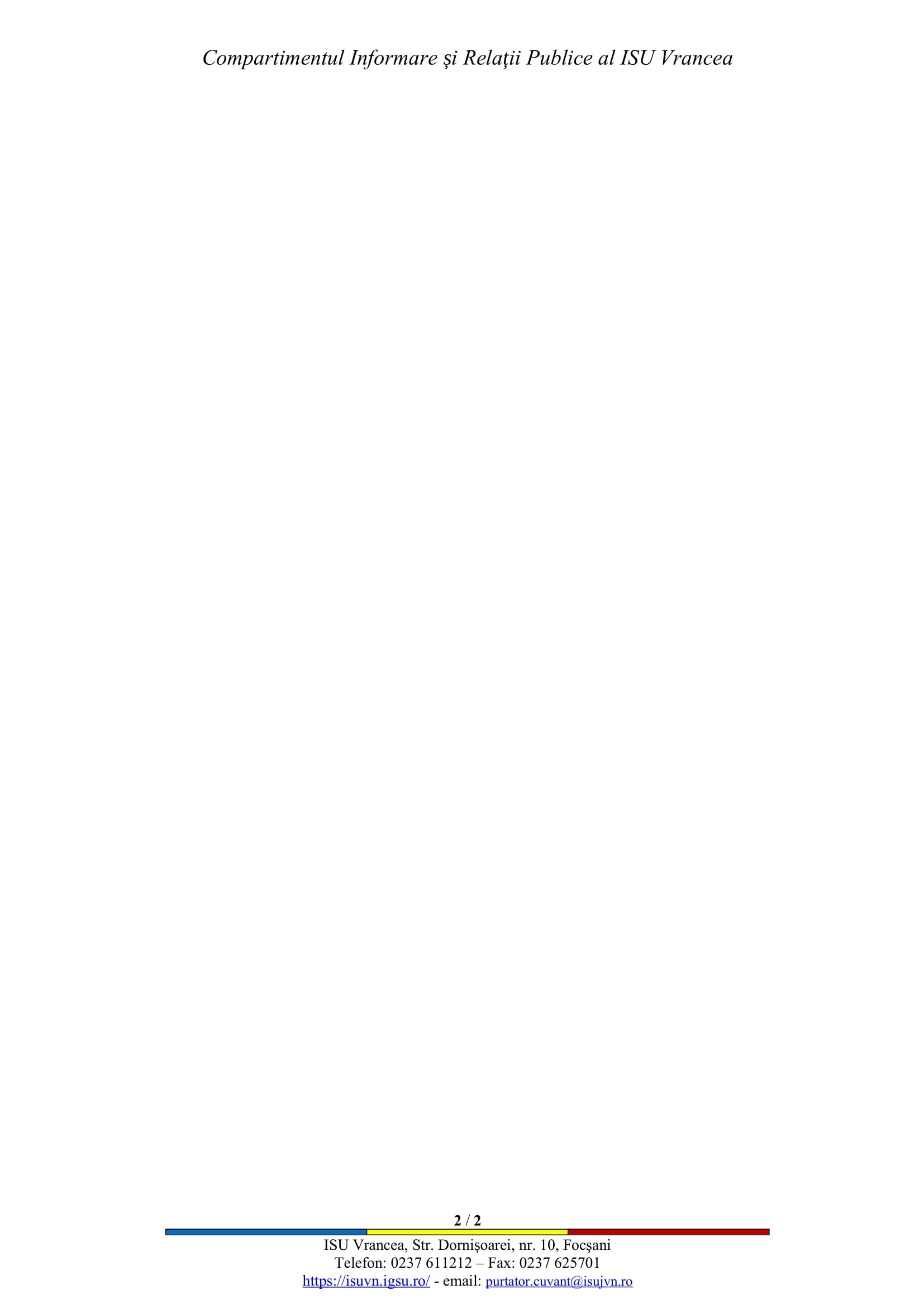Reprezentanții inspectoratului subliniază că activitățile de prevenire și pregătire sunt permanente, având ca obiectiv creșterea rezilienței comunităților vrâncene și consolidarea unui mediu sigur pentru toți locuitorii județului.