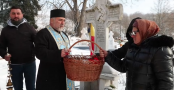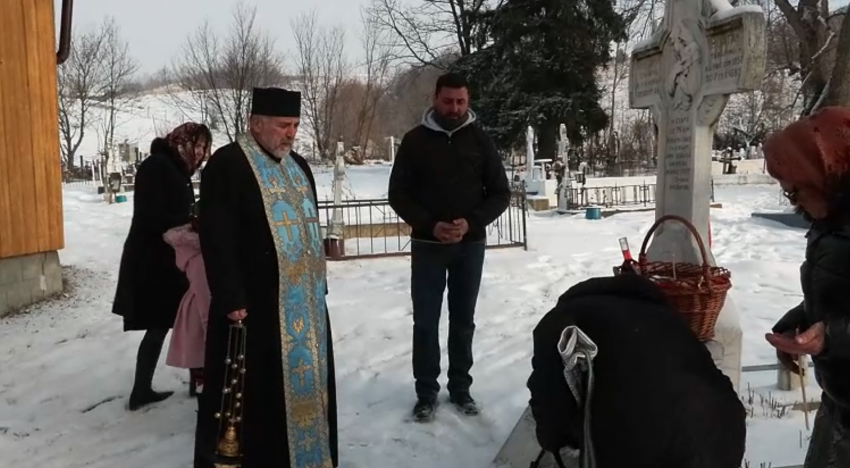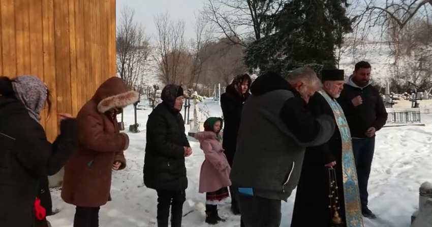 La Gura - Văii, înainte ca slujba să înceapă, s-a pornit ninsoarea, semn bun, de belşug.