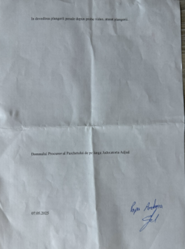 În sprijinul acuzațiilor, Popa Andreea a anexat imagini surprinse de camerele de supraveghere din sediul instituției, care ar arăta momentul în care secretarul intră în birou, într-o zi de duminică. Cazul a fost preluat de Serviciul de Investigare a Criminalității Economice (SICE) în cadrul dosarului penal nr. 503/258/P/2025, aflat în lucru la Parchetul Adjud.