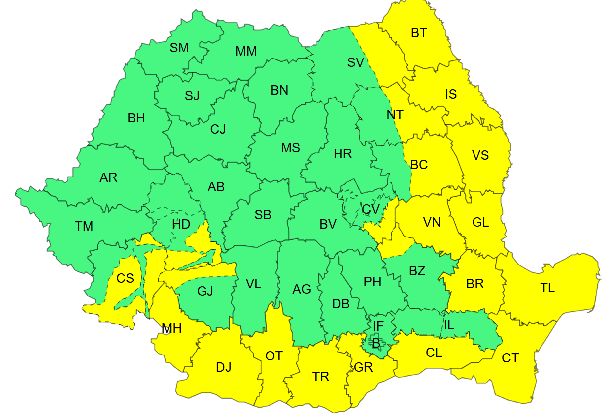 Pentru județul Vrancea este în vigoare Cod Galben în intervalul 15 februarie, ora 14:00 – 16 februarie, ora 08:00, pentru: