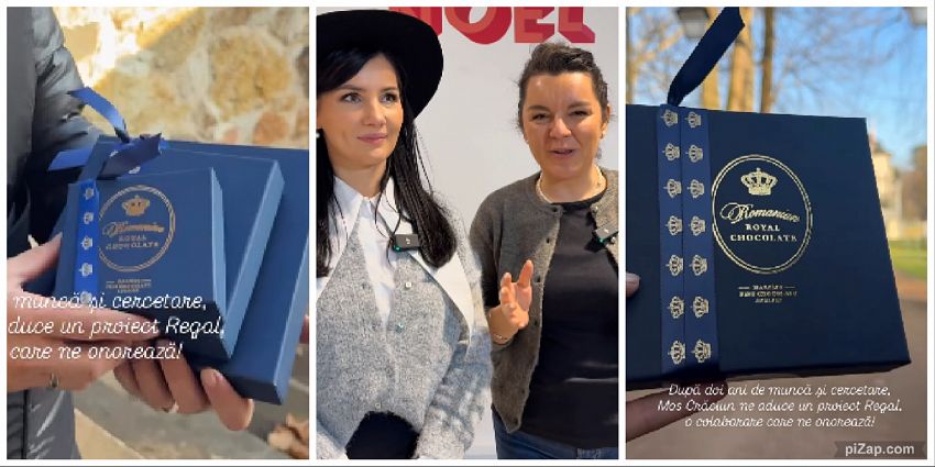 „Pentru că suntem la Palatul Regal Săvârșit, mi se pare o ocazie perfectă să vă anunțăm parteneriatul nostru început cu Casa Regală. S-a materializat cu trei colecții foarte frumoase, speciale, pentru că fiecare cutie conține o pralină realizată împreună cu Majestatea Sa”, a declarat Alina Goidea.