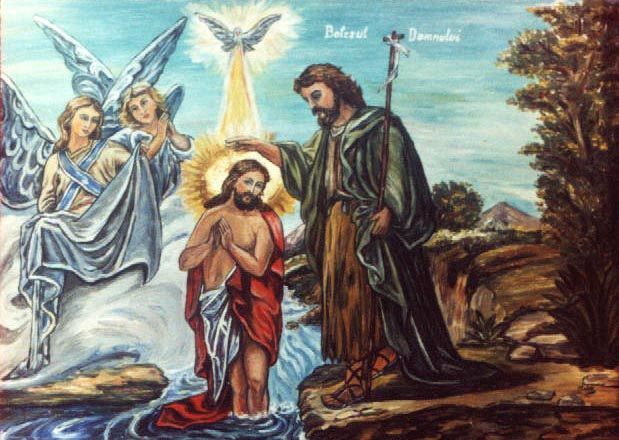 Dar să vedem ce spune Evanghelistul Matei : „În zilele acelea a venit Ioan Botezătorul şi propovăduia în Pustia Iudeii, spunând: «Pocăiţi-vă că s-a apropiat împărăţia cerurilor !» (…) Atunci a ieşit la el Ierusalimul şi toată Iudeea şi toată împrejurimea Iordanului. Şi erau botezaţi de către el în râul Iordan, mărturisindu-şi păcatele. (…) În acest timp a venit Iisus din Galileea, la Iordan, către Ioan, ca să se boteze de către el. Ioan însă Îl oprea, zicând: «Eu am trebuinţă să fiu botezat de Tine, şi Tu vii la mine?» Şi răspunzând, Iisus a zis către el: «Lasă acum, că aşa se cuvine nouă să împlinim toată dreptatea.» Atunci L-a lăsat. Iar botezându-se Iisus, când ieşea din apă, îndată cerurile s-au deschis şi Duhul lui Dumnezeu s-a văzut pogorându-se ca un porumbel şi venind peste El. Şi iată glas din ceruri zicând: «Acesta este Fiul Meu cel iubit întru Care am binevoit.»” (Matei, III, 1-17)