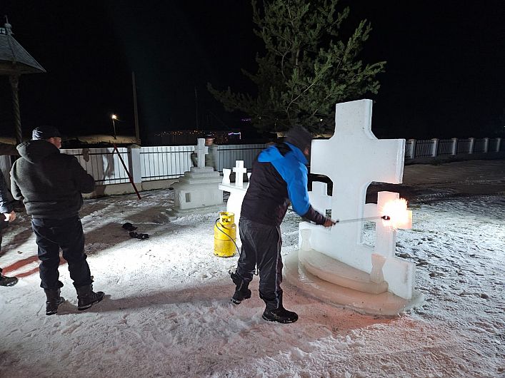 VIDEO + Foto | Imagini spectaculoase cu crucile de gheață realizate la Năruja de Boboteaza 2025