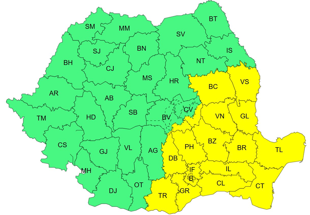 Zone afectate: județele Constanța, Călărași, Ialomița, Giurgiu, Ilfov și municipiul București.