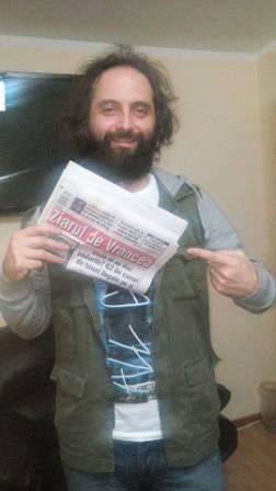 Chitaristul trupei "Bere Gratis", Marius Bob, a lecturat cu plăcere Ziarul de Vrancea şi le-a transmis sănătate şi toate cele bune citititorilor noştri. Trupa a cântat pe scena Ateneului în ultima seara a Delmar-ului. (foto Daniel Muşat)