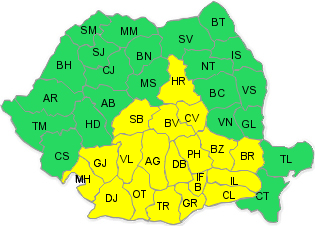 Cod galben de ger in Bucuresti si in 19 judete ale tarii pana joi dimineata