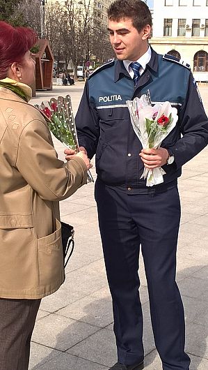 Cu ocazia zilei de 8 Martie, IPJ Vrancea prin intermediul poliţiştilor din cadrul Compartimentului Poliţiei de Proximitate au oferit doamnelor şi domnişoarelor, flori şi felicitări.