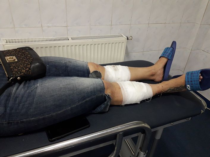 ”Stăteam pe bulevard unde locuiește fiul meu, pe o bancă, cu nepoțica mea, cu soțul meu și cu mai multe femei. Au oprit două mașini, un BMW și un Ford albastru, au coborât doi bărbați și două femei, cu bâte și-au tăbărât pe noi. Un copil a apucat de a fugit, m-au apucat pe copii mei, m-au apucat pe mine, mi-au dat cu bâtele, femeile le-au dat cuțitele bărbaților în mână, unul îmi ținea un picior, celălalt un picior, îmi băga cuțitul în picior, apoi s-au dat cuțitele înapoi, apoi amândoi mi-au luat picioarele și mi-au dat cu bâtele și femeile mă țineau și mă omorau pe partea asta. Frații mei sunt ăștia. Am avut un mic conflict, eu am depus la parchet plângere că ne omoară, că ne taie, ne paralizează, pe mine și pe copii mei (...) Când am venit aici, i-am găsit pe ei, au făcut și au spus că noi ne-am dus la ei, nu că ei au venit peste noi. O să depun plângere la poliție ”, a spus Tatiana Scarlat, una dintre victimele transportate la spital de un echipaj SMURD.
