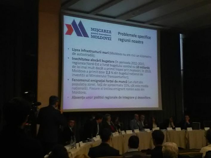 Autostrăzile Moldovei (A7 și A8), portul Galați, dar și „uitarea” unor județe precum Botoșani și Vaslui s-au numărat printre obiectivele prioritare ale MDM. George Țurcănașu, de la Facultatea de Geografie a Universității „Al.I. Cuza”, și el fondator al noului grup civic, a prezentat câteva date sintetice ale migrației masive din Moldova ultimilor ani, dar și indicatori economici care arată că județele Moldovei produc și „plătesc” Bucureștiului mai mult decât primesc înapoi.