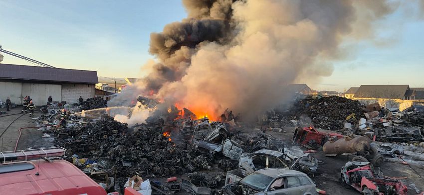 Potrivit datelor comunicate, focul a cuprins deșeuri provenite din dezmembrarea autovehiculelor, incendiul manifestându-se violent pe o suprafață mai mare de 300 de metri pătrați. Din cauza naturii materialelor afectate, intervenția este una complexă, existând riscul de degajări mari de fum și extindere a flăcărilor.