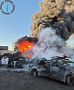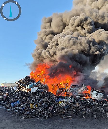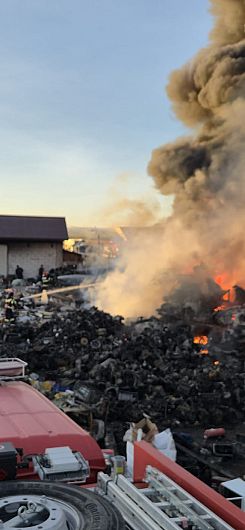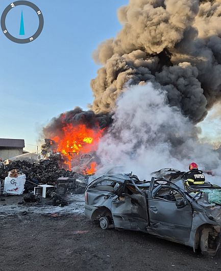 Intervenție susținută a pompierilor vrânceni, luni după-amiază, pentru stingerea unui incendiu izbucnit la un centru de colectare a deșeurilor provenite din dezmembrarea autovehiculelor