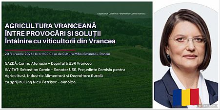 Viticultorii și producătorii agricoli din Panciu și din întreg județul Vrancea sunt invitați vineri, 20 februarie 2026, de la ora 11:00, la o întâlnire de lucru organizată la...
