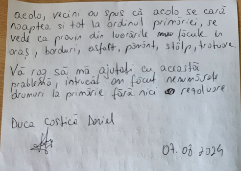 Ce spune odobeșteanul:„ Am înregistrat la Primăria Orașului Odobești reclamația cu nr 7785 din 07 08 2024.”