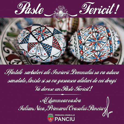 În numele întregii echipe a Primăriei Orașului Panciu, vă doresc un Paște fericit!