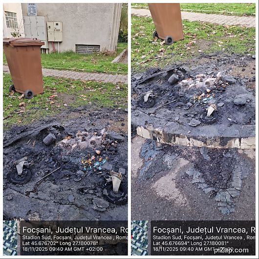 Un nou act de vandalism a fost înregistrat în municipiul Focșani, unde încă o pubelă de 1100 de litri destinată colectării deșeurilor menajere a fost incendiată în noaptea de 18 noiembrie 2025, în cartierul Sud. Este al patrulea incident de acest fel înregistrat în ultimele luni, semnalând o problemă gravă și persistentă care afectează infrastructura publică și siguranța locuitorilor.