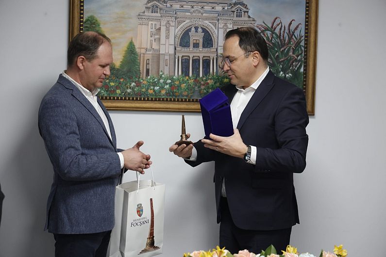 La finalul întâlnirii, Primarul Cristi Valentin Misăilă i-a oferit Primarului Ion Ceban un tablou realizat de elevii Liceului de Artă "Gh. Tattarescu" cu prima stemă a Municipiului Focșani după Unirea Principatelor Române de la 24 ianuarie 1859.