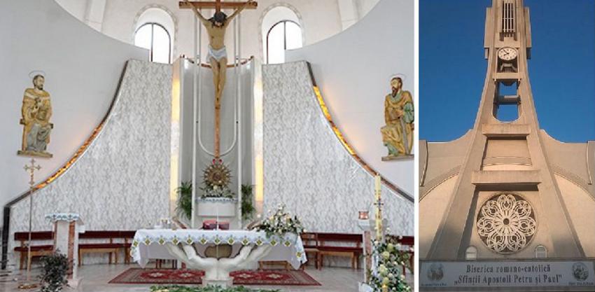 Biserica <<Sfinții Apostoli Petru şi Paul>> din Focșani a fost construită în anii de după căderea regimului comunist şi a fost sfinţită în anul 2001. În interiorul bisericii, în prezbiter, în stânga şi dreapta tabernacolului, se află statuile celor doi mari sfinţi patroni.”-Benone Butacu -Preot Paroh al Parohiei romano-catolice "Sfinţii Apostoli Petru şi Paul" din Focşani;