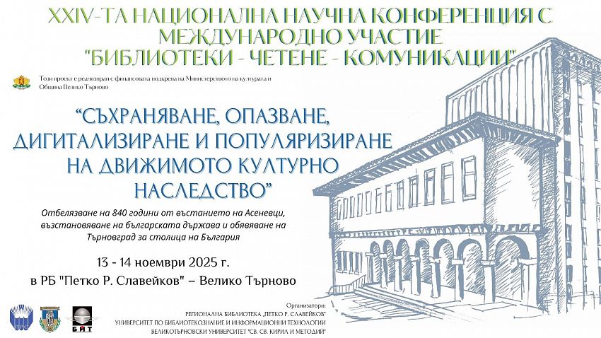 Biblioteca Județeană „Duiliu Zamfirescu” Vrancea a reprezentat cu onoare județul la National Scientific Conference with International Participation „Libraries – Reading – Communications”, ediția a XXIV-a, desfășurată în perioada 13–14 noiembrie 2025 la Veliko Tarnovo, Bulgaria. Evenimentul, dedicat temei „Preservation, Conservation, Digitization and Promotion of Movable Cultural Heritage”, a reunit specialiști și delegații din mai multe țări europene.