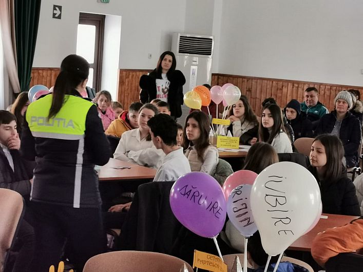 Activitatea interactivă realizată de polițiștii de la siguranța școlară alături de elevii claselor a IX-a și a X-a de la Colegiul Economic ”Mihail Kogălniceanu”, avocați și cadrele didactice a avut ca scop promovarea modelelor de prevenire a violenței în școli și îmbunătățirea climatului educațional.