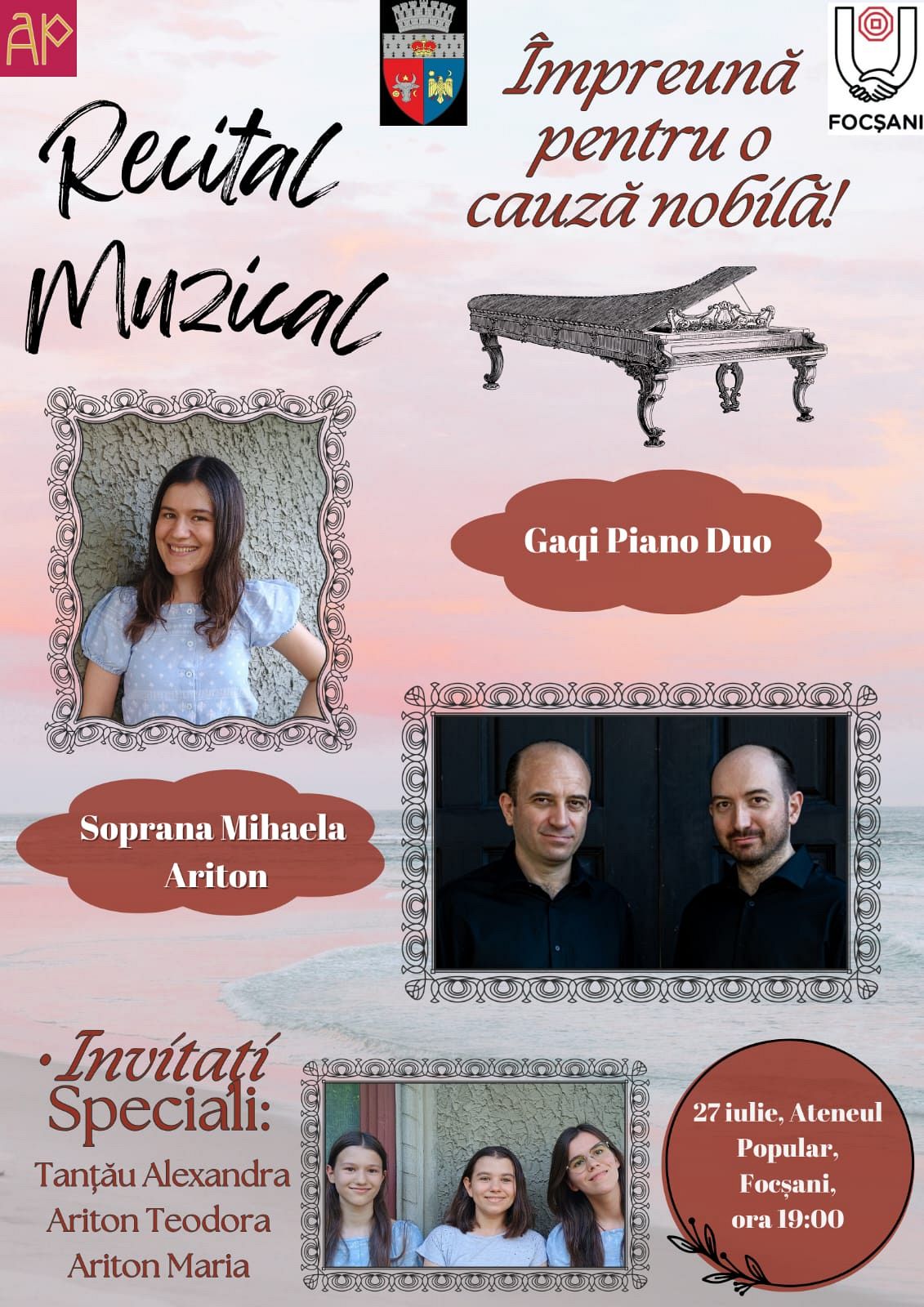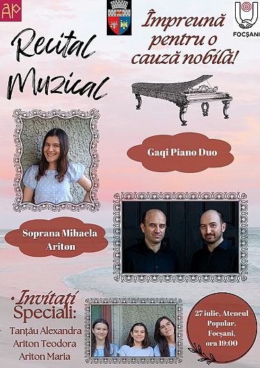 Recital muzical „Împreună pentru o cauză nobilă”, sâmbătă 27 iulie 2024 la Ateneul Popular Focșani