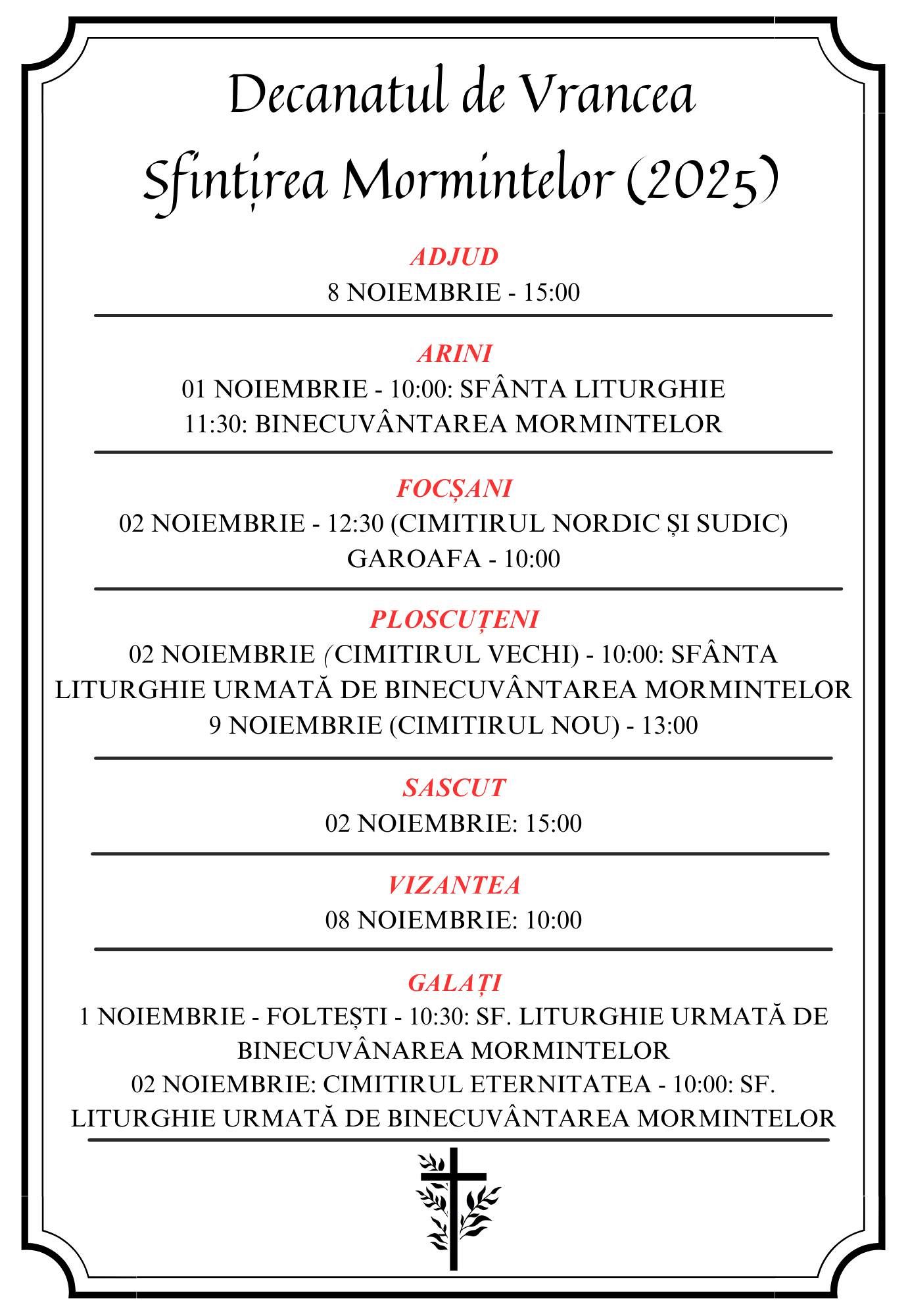 În continuare oferim programul complet al sfințirii mormintelor pentru decanatul de Vrancea: