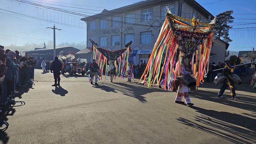 Cetele de mascați, însoțite de zgomotul asurzitor al talăngilor și clopoțeilor, au defilat pe străzile comunei, aducând cu ele o atmosferă de sărbătoare și voie bună. În centrul comunei, spectatorii au întâmpinat urătorii cu aplauze și bucurie, imortalizând momentele speciale prin fotografii și filmări.