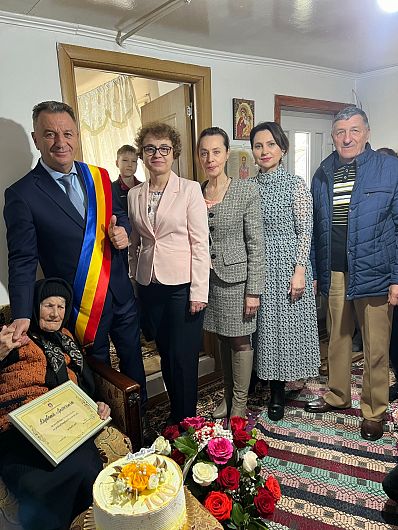 Marți, 12 martie 2024 a venit și primarul Comunei Vulturu din care face parte satul Vadu Roșca și i-a adus sărbătoritei care a împlinit 100 de ani un buchet de flori o diplomă și un tort!