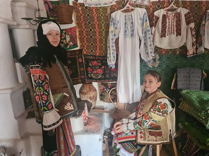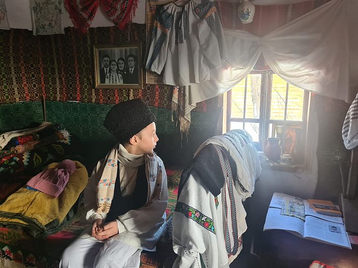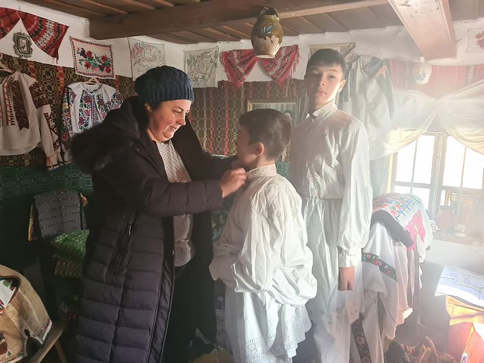Împreună cu părinții am pregatit din timp costumele si recuzita.În casa veche a Anicăi Tufănoiu-Dumnezeu să o odihnească in pace!-cei șapte colindători s-au îmbrăcat, s-au echipat pentru a lăsa tuturor o mărturie a preocupărilor și activităților în care se implică. Cu atâta entuziasm au făcut asta, cu atâta surprindere au aflat despre glugă, ciomag, broboadă, tulpan, cojoc, bundă, ilic gros de cioareci, suman, oghele, ciorapi de lână, ochinci, căciulă de blană pentru iarna și rolul lor in cadrul obiceiurilor!