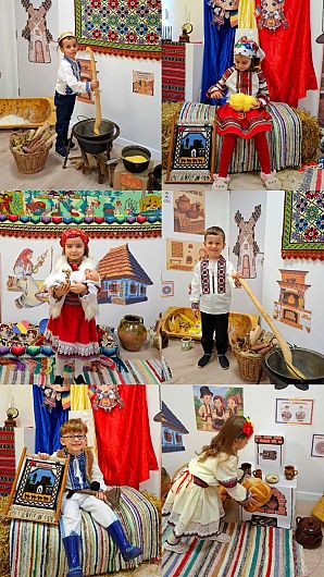 Copiii au pășit într-un decor ce părea desprins din albumele cu amintiri ale bunicilor. Lampa veche, fusul, furca cu lână, peria de cânepă, mileurile croșetate, ghergheful, covoarele țesute, straiele tradiționale și chiar copaia folosită odinioară ca leagăn au transformat sala într-un veritabil muzeu al copilăriei românești.