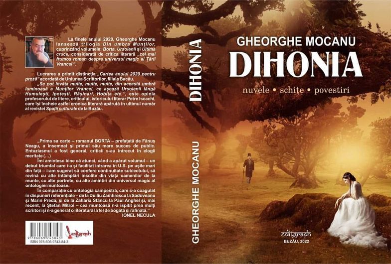 Vineri 1 aprilie 2022, începând de la ora 11:00, va avea loc la Casa de Cultură ”Constantin C. Giurăscu” din Odobești lansarea nou apărutului volum ”Dihonia” al scriitorului Gheorghe Mocanu, colaborator al Ziarului de Vrancea.Invitați la lansarea de carte de vineri 1 aprilie sunt Petrache Plopeanu, crtitic, doctorand al Facultății de Limbi Străine București, Mihai Bisericanu, actor la Teatrul ”Bulandra”, Petre Isachi, critic, istoric literar, directorul revistei ”13 Plus”, Dumitru Brăneanu, directorul filialei Bacău a Uniunii Scriitorilor.