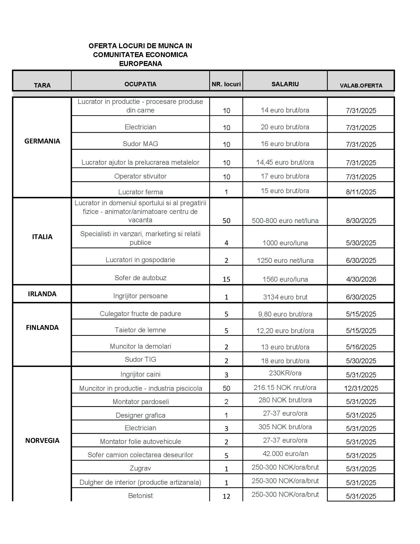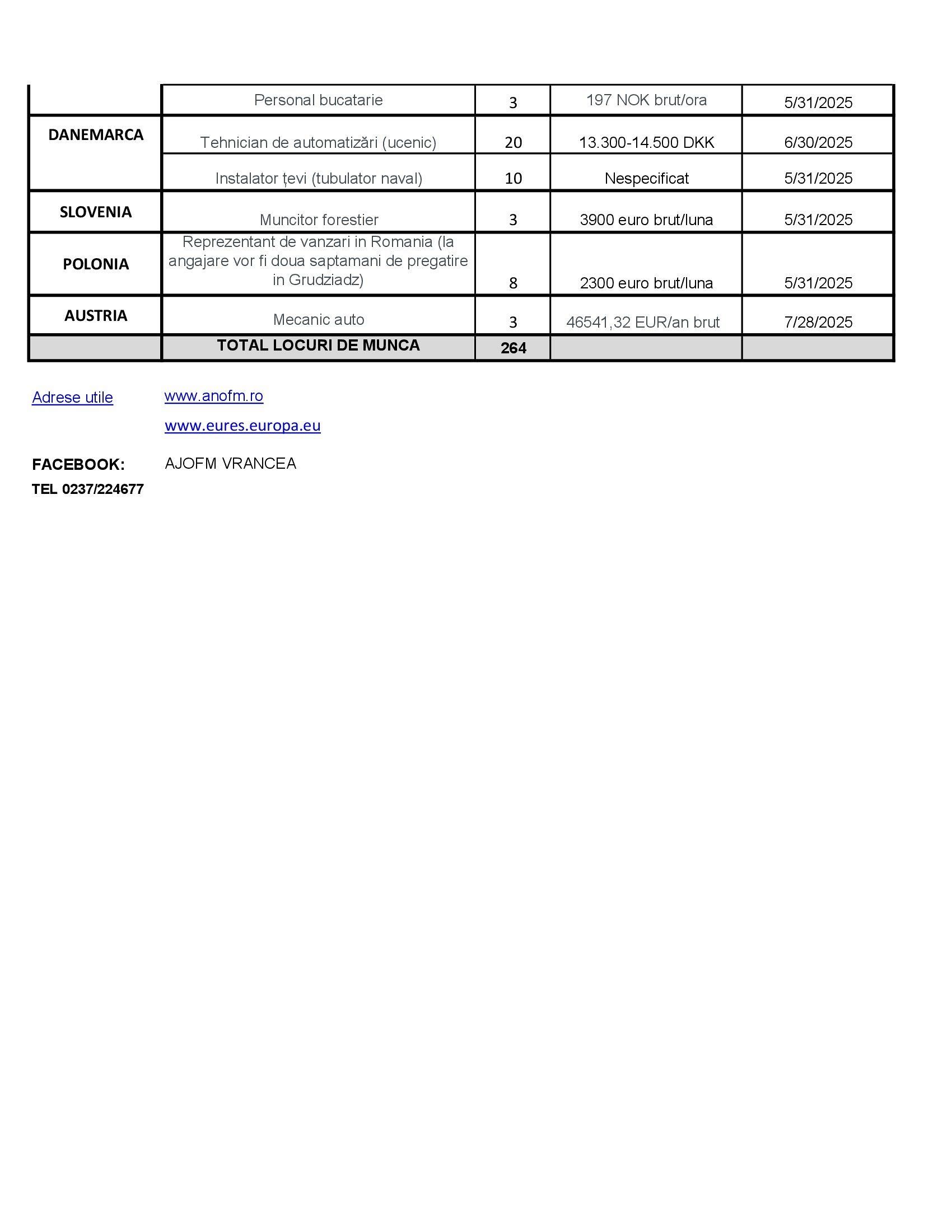 Locuri de muncă pentru vrânceni: 256 în Vrancea și 264 în UE