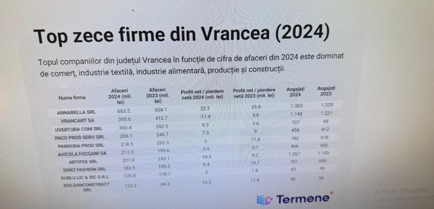 Top 10 companii din Vrancea în 2024
