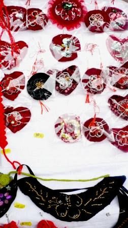 În cazul florilor în coajă de nucă procesul este îndelungat pentru că se începe din vară cu adunatul plantelor», ne-a mai spus Gina Dumitraşcu. Un astfel de mărţişor costă numai 3 lei. Alt meşter, altă variantă de mărţişoare: tipare de caş în miniatură. «Eu lucrez sculptură în lemn şi m-am gandit să fac şi mărţişoare pe care lumea le cumpără pentru că sunt tradiţionale», ne spune Tudoriţa Lupaşc, meşter popular din comuna Nereju. Confecţionarea unui astfel de mărţişor durează două ore, necesitand multă migală. Trebuie apoi finisat, dat cu ulei de ricin şi ataşat sistemul de agăţare. Costul unui astfel de mărţişor este în jur de 6-7 lei. Meşterii s-au specializat şi în confecţionarea brăţărilor din mărgele, la mare căutare în această perioadă fiind cele în combinaţii de alb şi roşu. Targul este abia la început, iar cumpărătorii în număr mai mare sunt aşteptaţi în zilele următoare. «Deocamdată oamenii privesc, iar unii mai şi cumpără, însă cererea mare este cu o zi înainte de 1 martie. Preţurile sunt accesibile pentru că lumea nu prea mai are bani. În general cei care cumpără sunt persoanele care apreciază munca, dar din păcate mulţi tot la produse «made în China» ajung», ne-a spus Gina Dumitraşcu. Alături de mărţişoare meşterii populari mai vand şi alte produse realizate în gospodăriile proprii, precum dulceţuri, siropuri de fructe sau botoşei de lană pentru copii, lucraţi manual. Targul de la Balada este deschis pană la finele săptămanii. (M. VLĂDESCU)