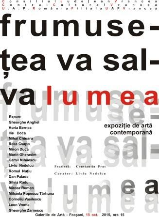 Galeriile de Artă din Focşani găzduiesc joi, 15 octombrie, 2015, vernisajul expoziţiei de artă contemporană « Frumuseţea va salva lumea ».
