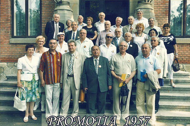 Şcoală adevărată! Doar trei ani dura ciclul mediu, dar ce ani! Examen de absolvire la sfarşitul fiecărui an şcolar, examen de maturitate cu şapte discipline de învăţămant! Profesori exigenţi, profesionişti şi buni ca painea caldă în afara orelor! O trecere prin fluxul memoriei mă înfioară: Davidescu de geografie, Rădvan de fizică. Untaru de istorie, Enescu şi Constantinescu de romană, Cocea şi Berceanu de matematică, Lavrinenco şi Popovici de limbi moderne. Iertare celor lăsaţi în afara paginii! Un director cu poreclă de hun, Atila. În rest, o cazemată în care copii de la ţară şi din oraş, după o admitere dură, încercau să-şi desluşească viitorul. Chiar dacă manualele erau stufoase, istoria lui Roller, de exemplu, profesorii erau adevăraţi! Pentru cititorul neavizat ”55” nu spune mare lucru. Pentru noi, absolvenţii promoţiei 1957, ”55” ÎNSEAMNĂ UN OBSEDANT „5”, O NOTĂ MAXIMĂ DUPĂ SISTEM SOVIETIC LA CARE SE AJUNGEA FOARTE GREU. Cu 3 treceai clasa, cu 4 erai mediocru, cu 5 luai premiu. Notarea era severă. Puţini ştiu că noi am început cu cinci clase paralele. Printr-un ordin, la sfarşitul anului calendaristic, după trimestrul întai, toţi corigenţii la trei obiecte au fost exmatriculaţi. Din cinci clase, au rămas trei. Dintre absolvenţii de atunci, prin bunătatea Domnului, unii mai respirăm aerul Planetei şi ne revedem de la o vreme în fiecare an la Colegiul Unirea, şcoala de care am fost mandri întotdeauna. La întalnirea de astăzi vom fi mai puţini ca de obicei. Important este să nu renunţăm la ideea de a ţine aproape. Ne-am revăzut şi la Călimăneşti, şi la Piatra Neamţ, dar tot mai frumos e la noi la şcoală, unde amintirile curg dulce şi îmbietor.