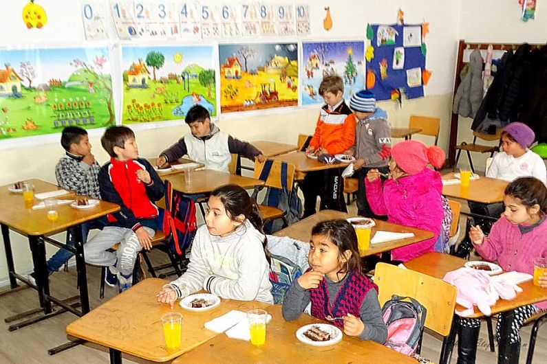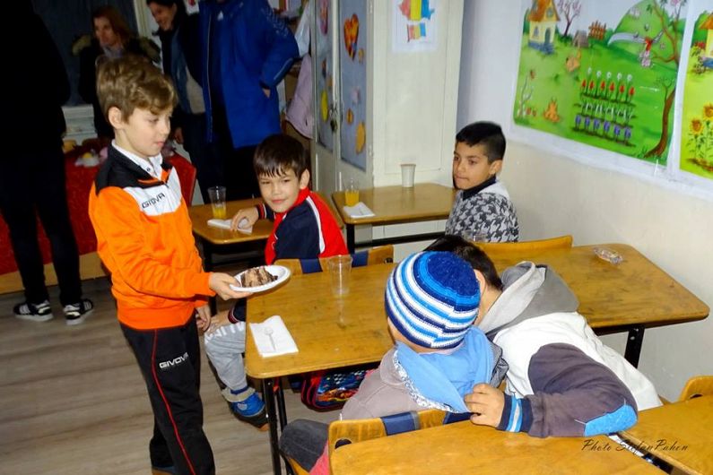 clasa pe care a tinut sa-i serveasca cu o felie de tort si un pahar de