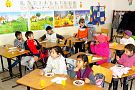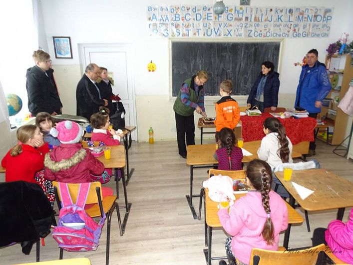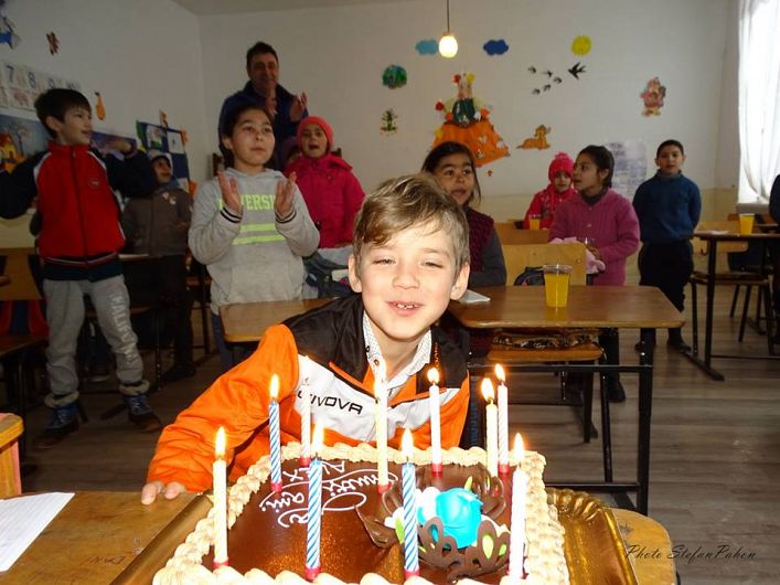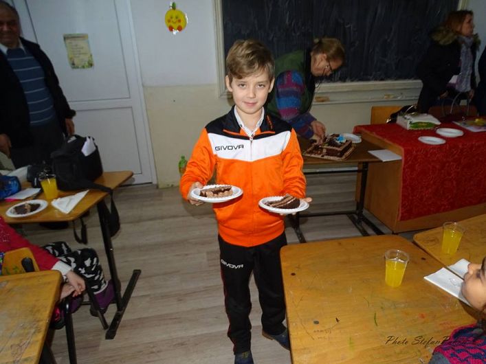 in scoala din Mihalceni, acolo unde invata, alaturi de colegii sai de