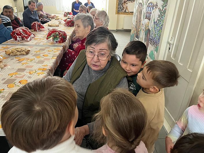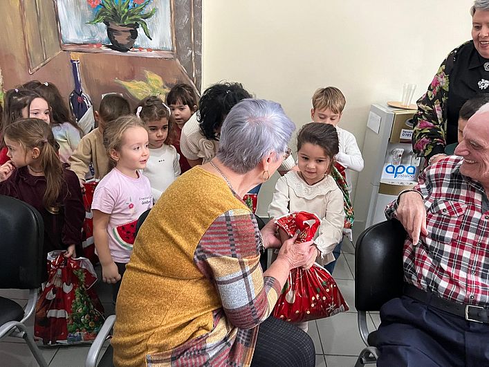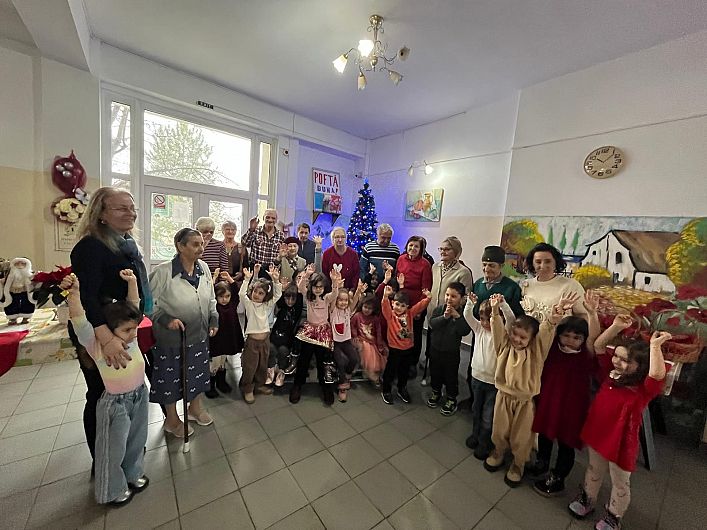 Cei mici au oferit vârstnicilor pachete cu produse de igienă, dulciuri și mici atenții, pregătite cu sprijinul material al părinților. Dincolo de darurile oferite, momentul cel mai emoționant a fost cel artistic: preșcolarii au interpretat colinde tradiționale românești, creând o atmosferă caldă, încărcată de emoție, specifică sărbătorilor de iarnă.