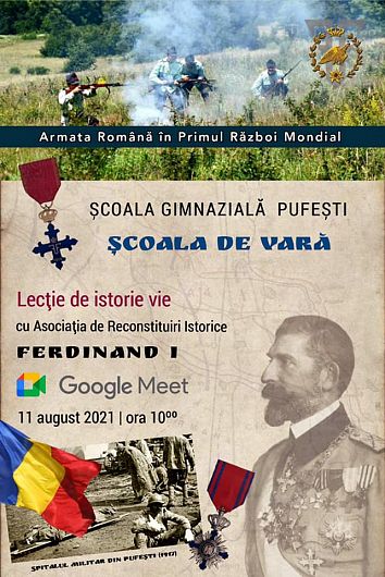 Zilele acestea Școala Gimnazială Pufești a găzduit o oră de istorie vie dedicată Armatei Române din Primul Război Mondial. Conducerea Asociației de Reconstituiri Istorice ,,Ferdinand I” a prezentat elevilor prin intermediul platformei Google Meet, ținutele militare și accesoriile, echipamentul de război, poveștile, jertfa și izbânda eroilor noștri. Istoria locală nu a fost neglijată, fiind menționat rolul comunei Pufești în razboiul de întregire națională, aici fiind singura școală care a funcționat pe timpul războiului și tot aici un spital de campanie.