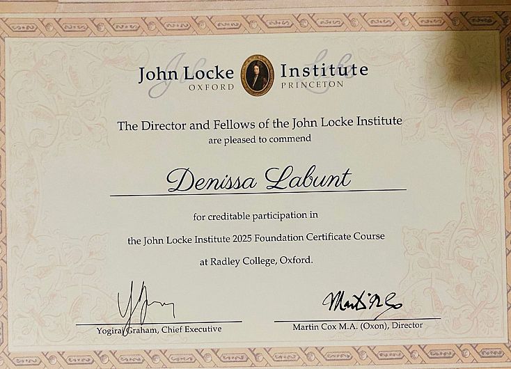 Denissa-Emanuela Lăbunț, bursieră la prestigiosul program internațional John Locke Institute – Foundation Certificate